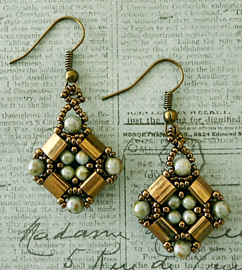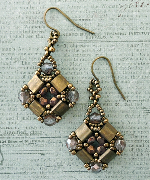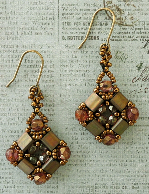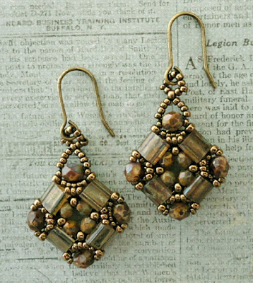 You can download Yvonne King's free "Layered Tila Bracelet" pattern from My Amari HERE. The earrings are made using a single motif from the bracelet for each earring and and I added loops for the earring wires.