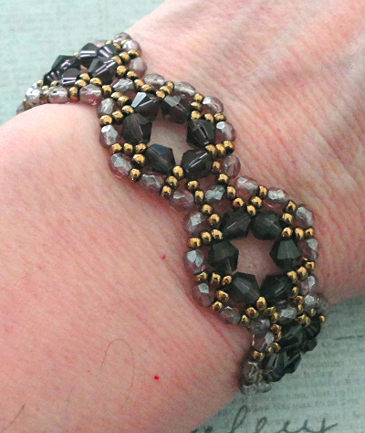 Unfortunately, I had a heck of a time trying to get the bicones to look purple in my photos. When there is no light shining through them, they appear to be black, but I think you can see the color pretty well in the photo at the top of this post.