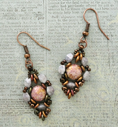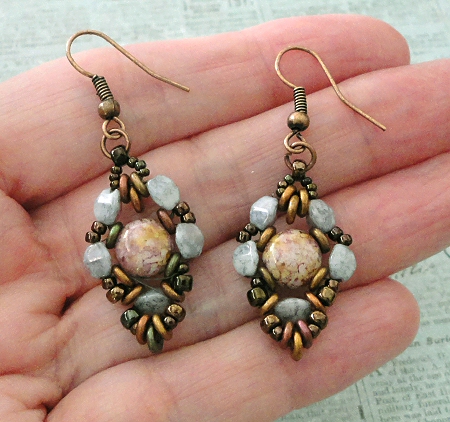 The "Luthien Earrings" are almost the same as the "Elbereth Earrings" that I blogged about the other day. The main difference is that there are more Pinch beads in these earrings.